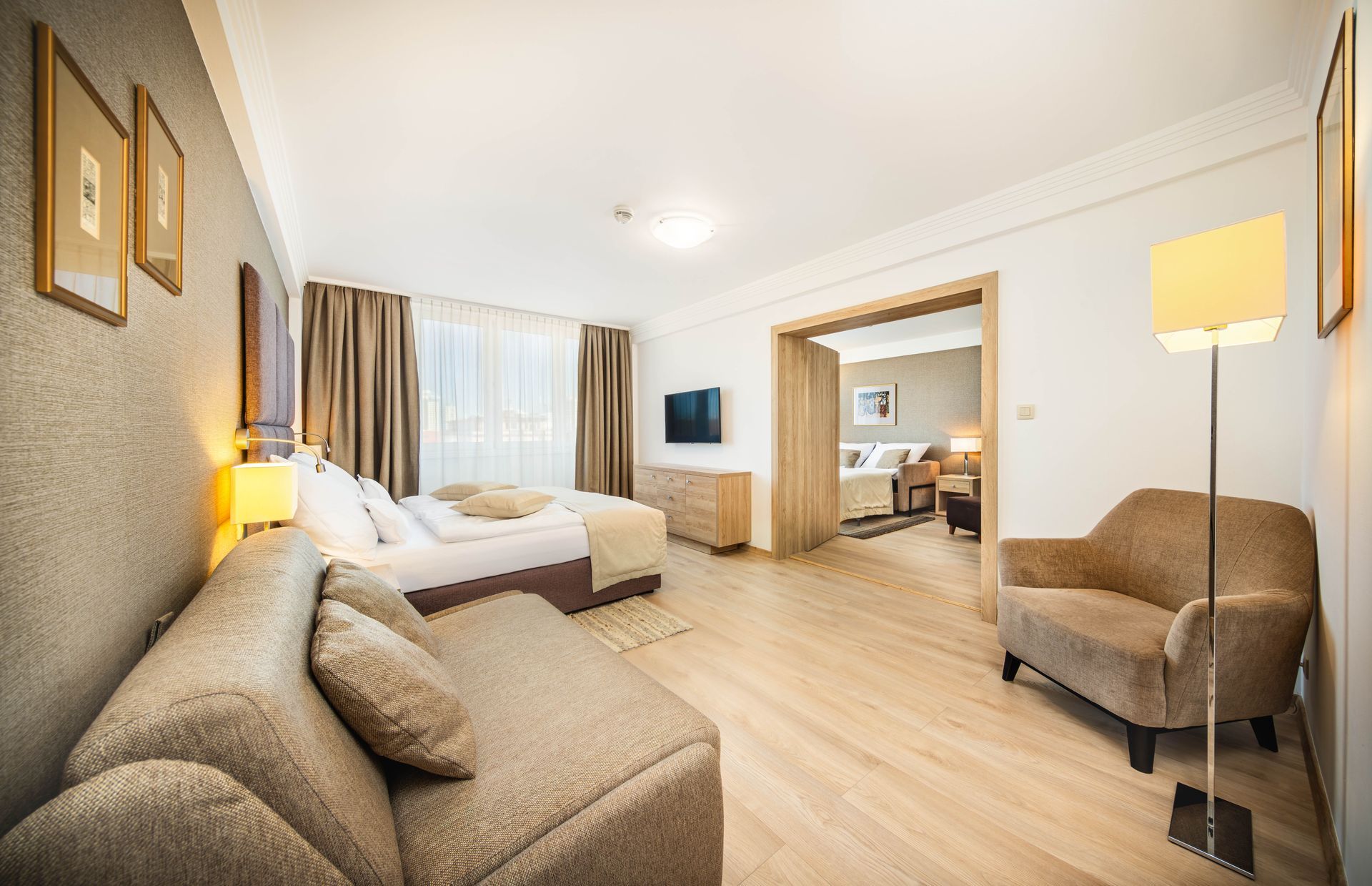 Familiensuite: ist im klaren, modernen Stil gestaltet. Es befindet sich im 4. Stock. Geeignet für Familien mit 4-6 Personen.