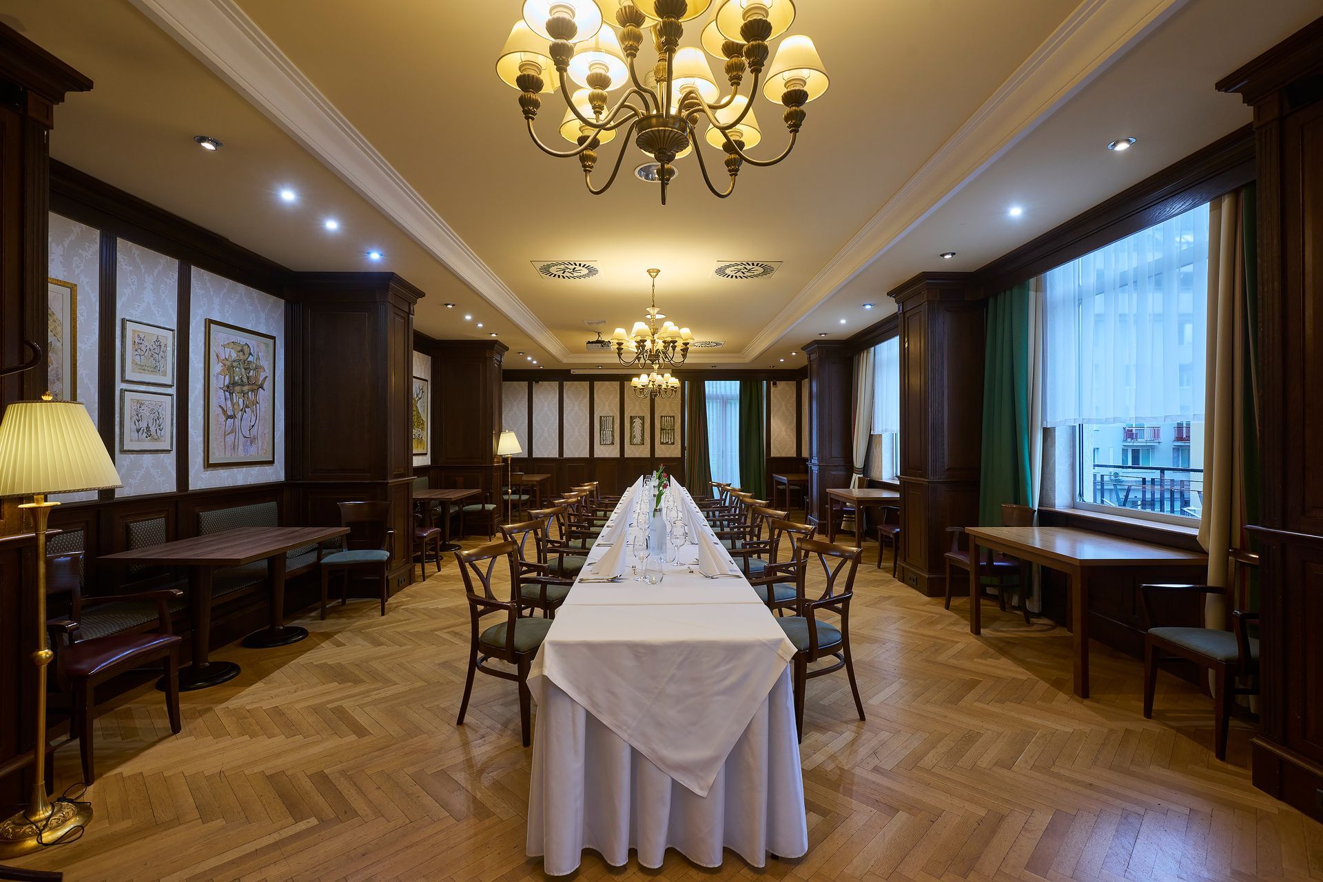 Prepojením konferenčného centra, súkromných salónikov a reštaurácie Sv. Huberta je možné získať kapacitu až 350 hostí.